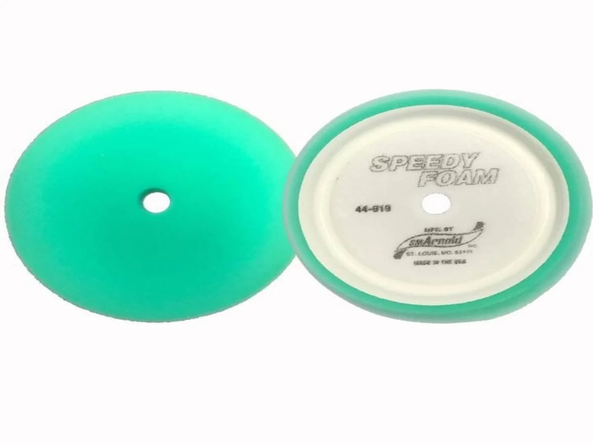 This Green Curved Pad 9" is designed for light compounding and paint oxidation removal on clear coat finishes. Its buffing capabilities are enhanced by the 60 ppi polyester foam, making it a great tool for achieving a glossy finish. Measuring in at 8" diameter and 2" thick, it also features cool vents to prevent overheating during use.