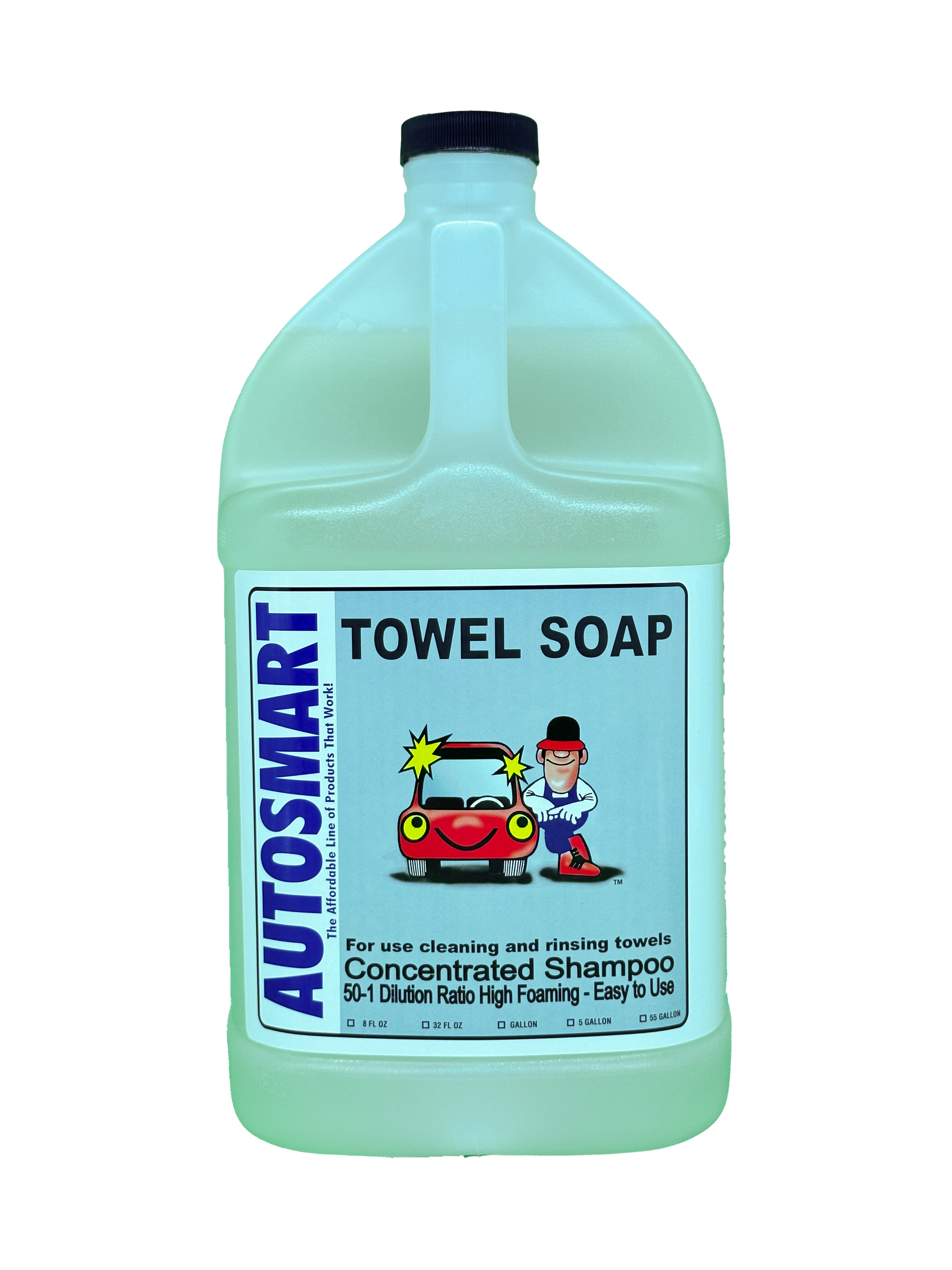 Our Towel Soap is a liquid microfiber towel detergent made to clean and preserve your microfiber towels. We recommend a half cup of detergent for an average sized load.